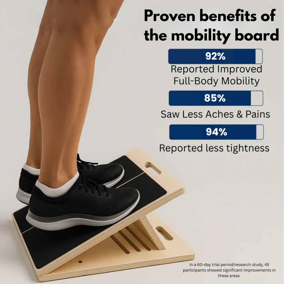Lifting weights or doing cardio doesn’t always address weak links. Most injuries come from instability in your ankles, knees, or calves, not from a lack of strength, but from lack of joint control. The Mobility Board strengthens and mobilizes those overlooked areas so your workouts don’t lead to setbacks.