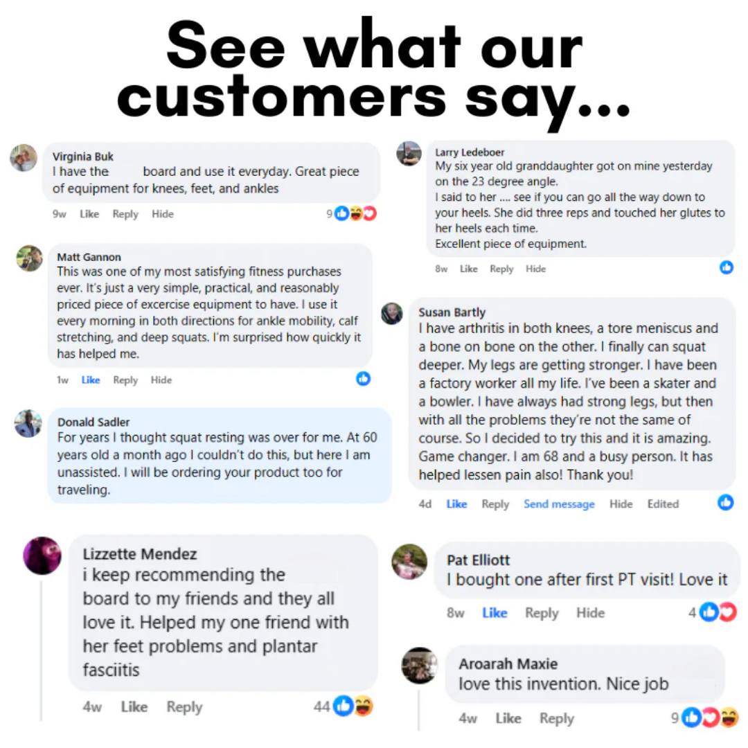 No more incorrect squat form or the knee pain that comes with it. Squatting on our Mobility Board shifts tension to your quads, building stronger legs and preventing future joint pain.